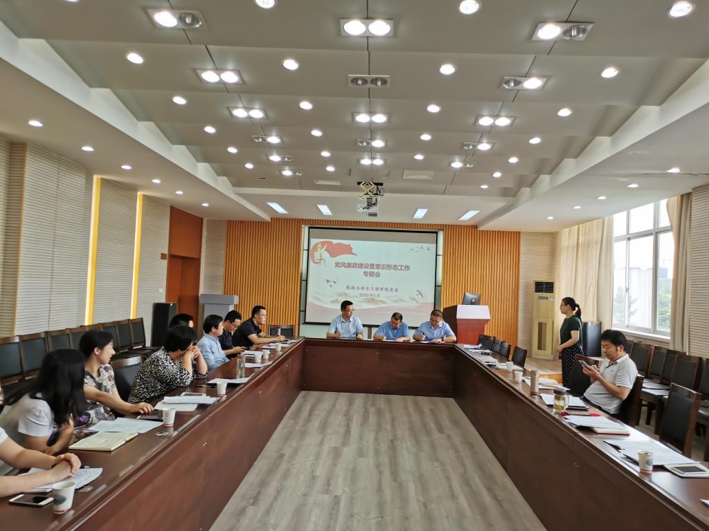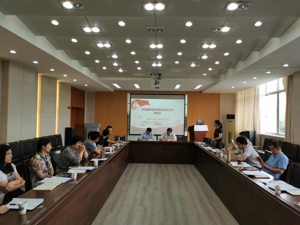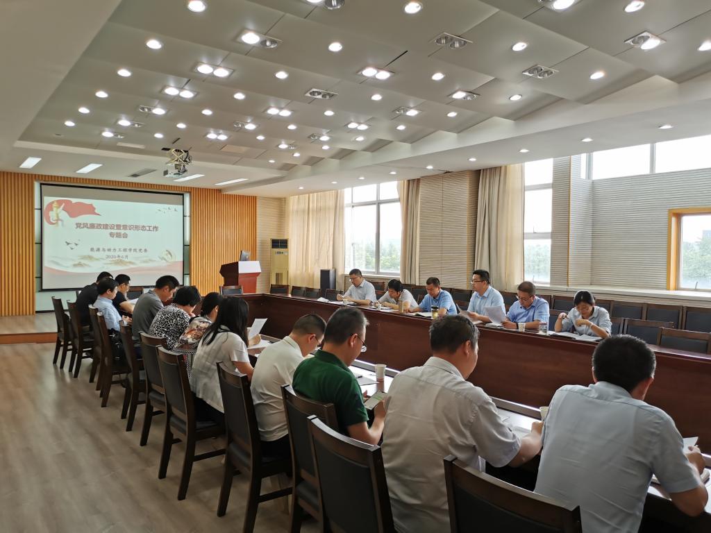 在至行苑·工程实践中心9-312会议室召开2020年党风廉政建设暨意识形态工作专题会议。会议由张祚键书记主持,学院领导班子、科级干部、各系(教研室)主任及支部书记与会。