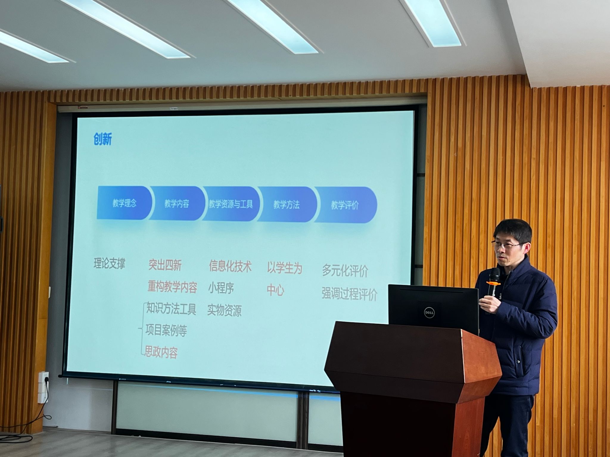 会上,薛锐副院长首先阐述了此次讲座举办的意义,他要求报名参赛的老师们积极准备,学院会在经费、培训等方面给予全力支持。随后,能动学院优秀教师代表董向元、王亮老师进行了交流讲座。他们从大赛准备、比赛评审标准、参赛材料的撰写、视频录制、教学设计创新等方面了进行了讲解,并结合自己和团队此前参赛的经验和教师们进行了分享和交流。参会老师纷纷表示,此次讲座对他们启发很大,对于他们后续的参赛具有重要的指导意义。