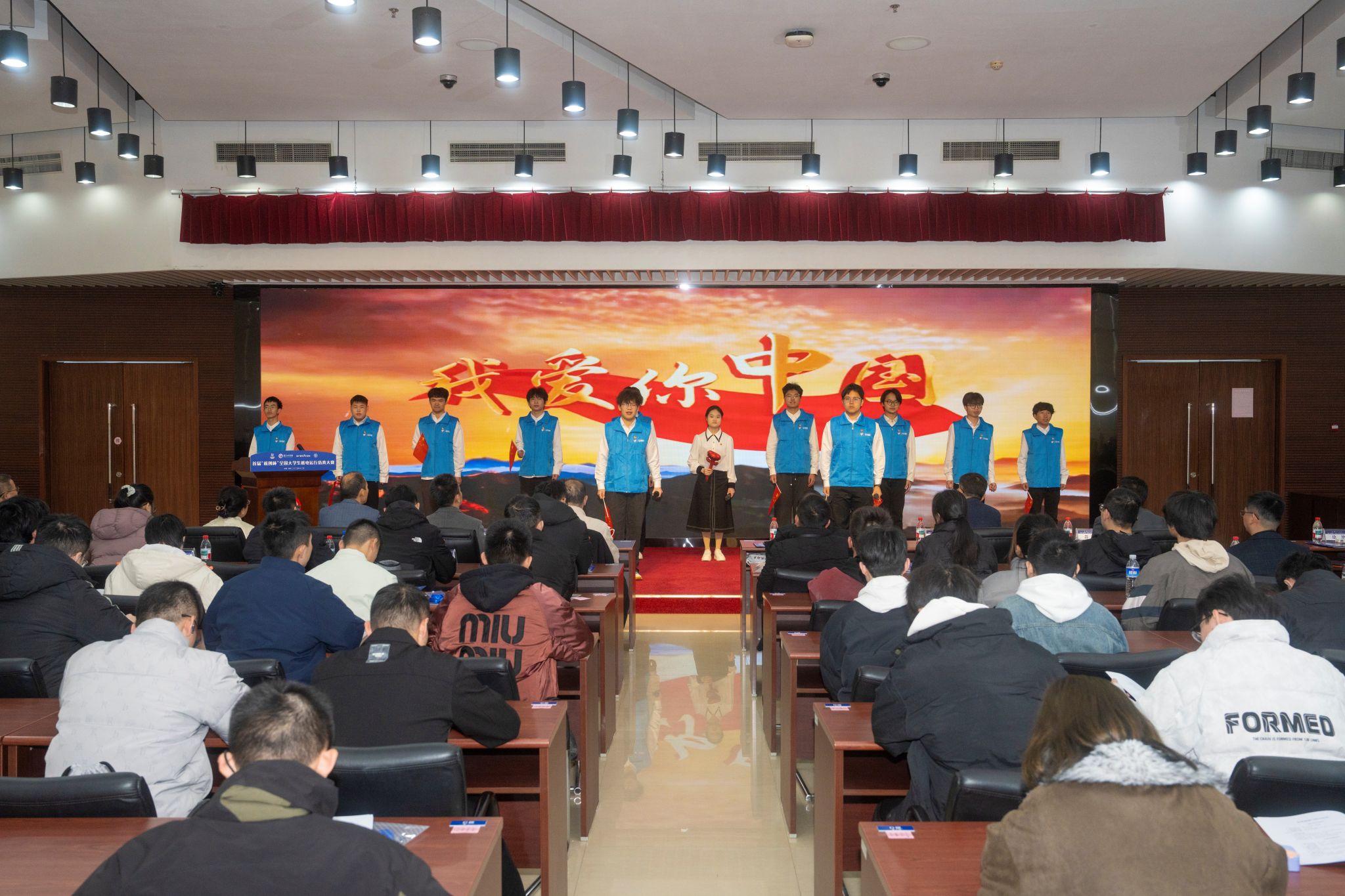 全国大学生“两弹一星”精神志愿宣讲团主题宣讲与《我爱你中国》小合唱的暖场演出中拉开帷幕。