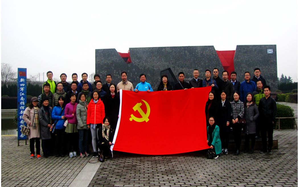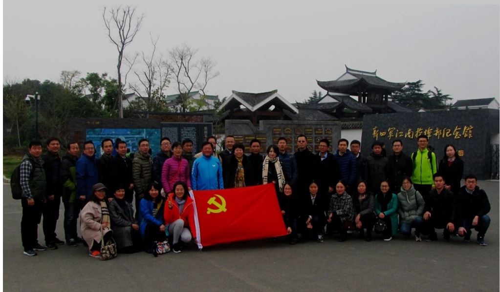 全体党员在新四军纪念馆前合影留念
