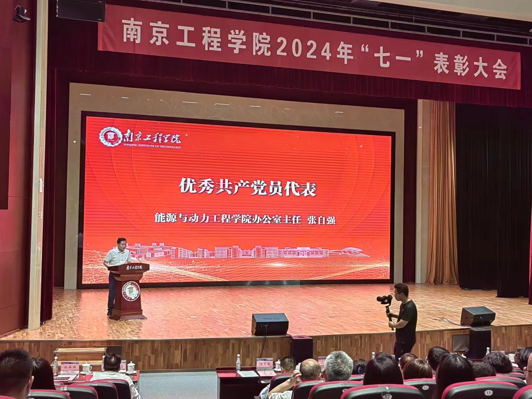 为庆祝中国共产党成立103周年,7月1日下午,学校2024年“七一”表彰大会在科创园天印会议中心学术报告厅隆重举行。全体在校校领导,校外共建单位相关负责人,学校“光荣在党50年”老党员代表、科级及以上干部、党支部书记、组织员,受表彰的先进集体和个人以及师生党员代表出席表彰大会。
