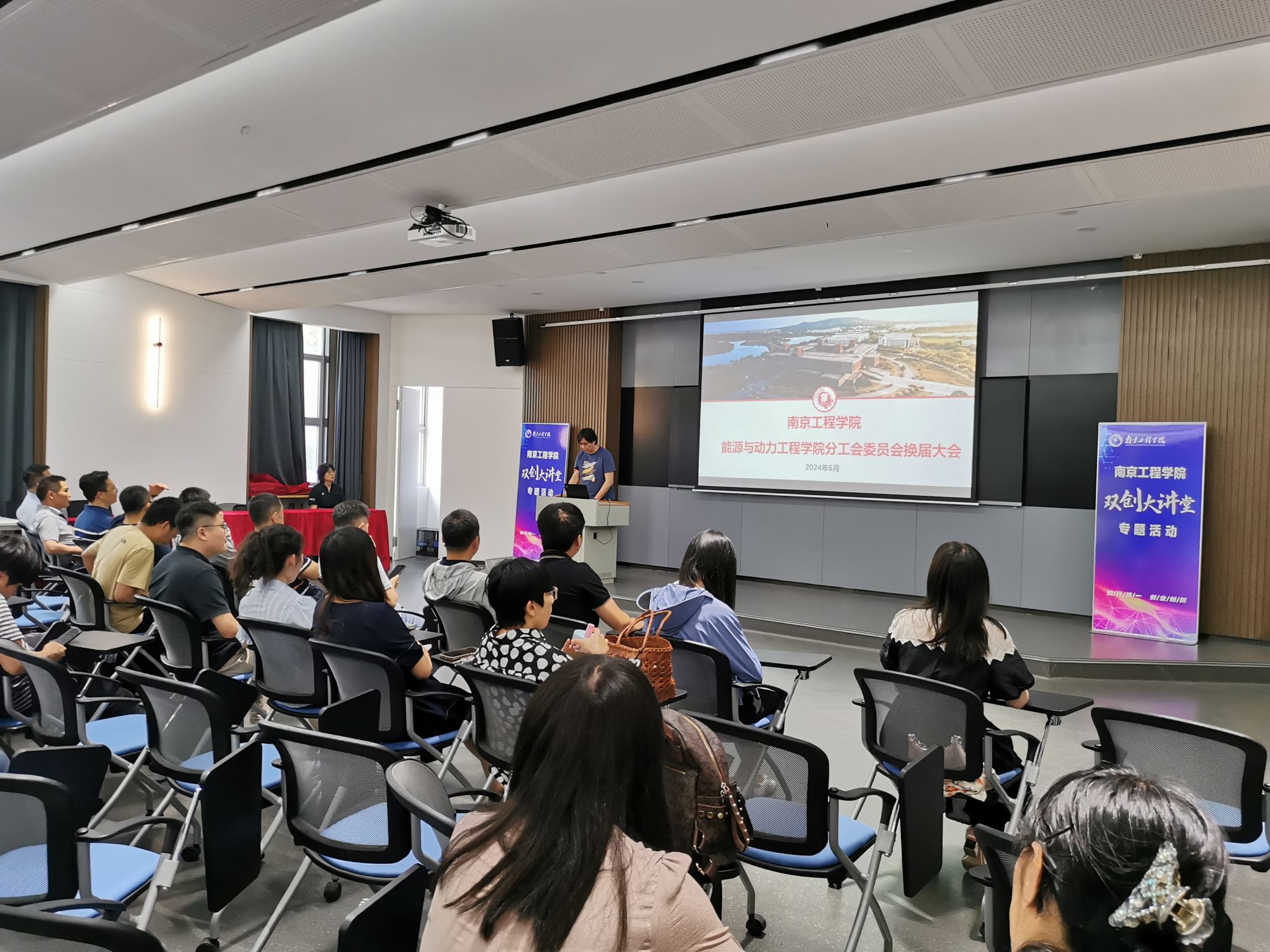 大会在雄壮的国歌声中隆重开幕,分工会主席上官剑峰代表学院上一届分工会委员会作了工作报告并汇报经费收支情况。他简要回顾了分工会工作,分工会在学院党委的坚强领导下,组织会员代表参加学校“两会”及学院的民主管理,举行各种丰富多彩的文体活动,积极加强分工会自身建设。五年来,学院分工会在全院教职工的大力支持和积极参与下,也取得了积极的成效,先后获得2020年江苏省工人先锋号,2019、2020、2021、2023年荣获杏吧视频