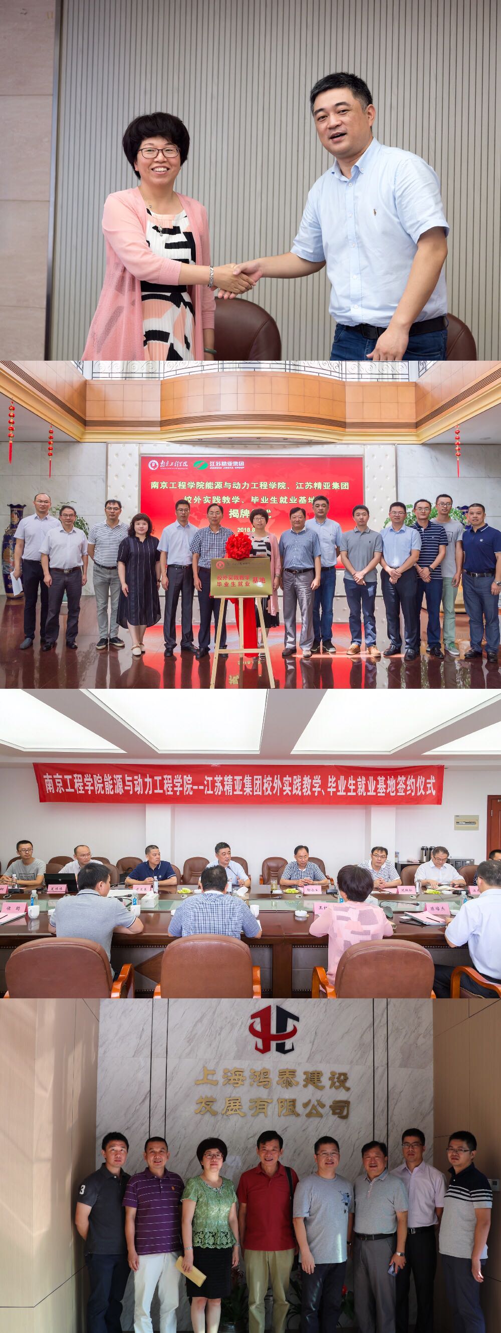 为进一步促进校友工作,开拓就业市场,听取用人单位对学校人才培养等方面的反馈和建议,探讨校企合作、建立人才长期战略合作和大学生就业基地等事项,8月22-23日,杏吧视频 一行赴江苏精亚集团、上海鸿泰建设发展有限公司开展用人单位走访和校友跟踪调研,并在江苏精亚集团举行了校外实践教学和毕业生就业基地签约揭牌仪式。学院领导班子成员、相关专业教研室主任、学工办主任等参加了走访调研。