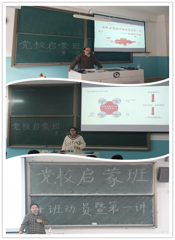 教师党员陈凌海、薛锐等开展专题授课。冯永伟老师以“与信仰对话”为主题,为新生带去了一次别开生面的启蒙党课。他以信仰和目标为切入点,深入浅出地解读党的十九大。作为制冷171班“第二班主任”,他还从班主任工作出发,希望同学们能够在大学期间严格要求自己,积极要求上进,学习和实践中锤炼自己,争取早日成为一名光荣的共产党员。陈凌海老师和薛锐老师则从认识接受党组织教育培养的目的意义、端正加入中国共产党的思想动机、加强个人自身修养三个层面为大一新生们进行了剖析,要求同学们加强党性修养,认识党,了解党,积极向党组织靠拢。