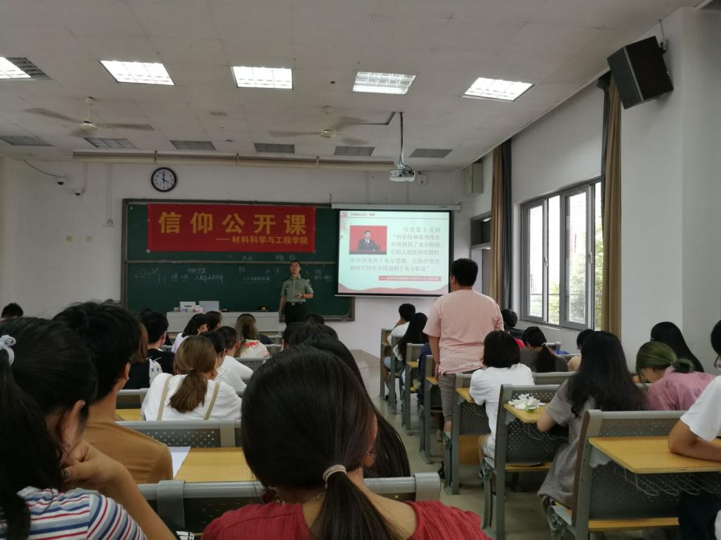 心中有信仰,脚下有力量。为帮助广大青年学子坚定理想信念,牢固树立“四个自信”,9月11日下午,材料科学与工程学院于教学楼A201举办了信仰公开课,特邀东部战区陆军舟桥某旅干部、国防大学政治学院许建敏担任主讲人。该院学工办老师及百余名学子聆听了此次课程。