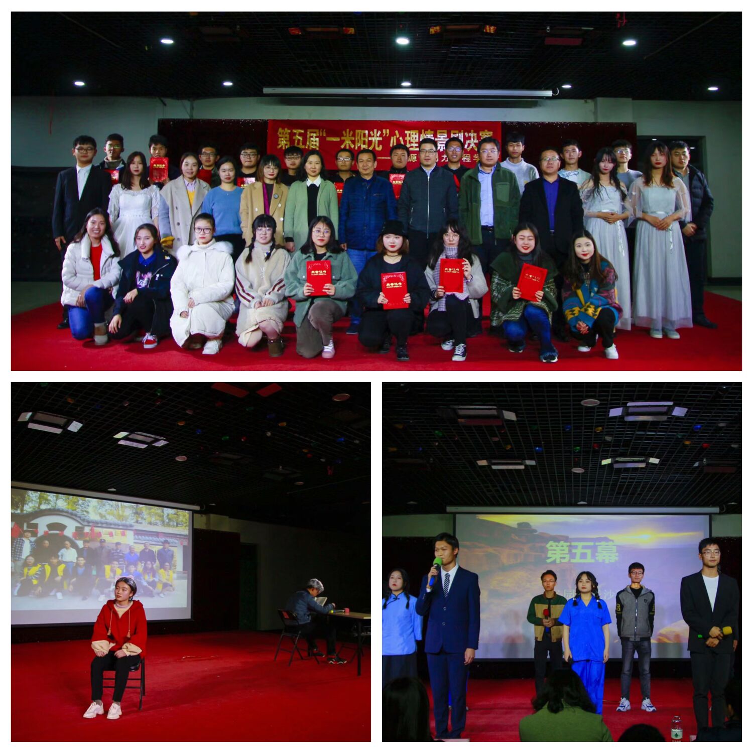 在至馨苑·综合服务楼大学生活动中心举办了第五届“一米阳光”心理情景剧大赛,通过生动直观的校园心理情景剧模式,教育引导同学们学习心理调适方法,增强心理素质。该院党政主要负责人,2019级班主任、第二班主任,校大学生心理健康中心、学工办老师,以及全体2019级全体学生参加了此次活动。