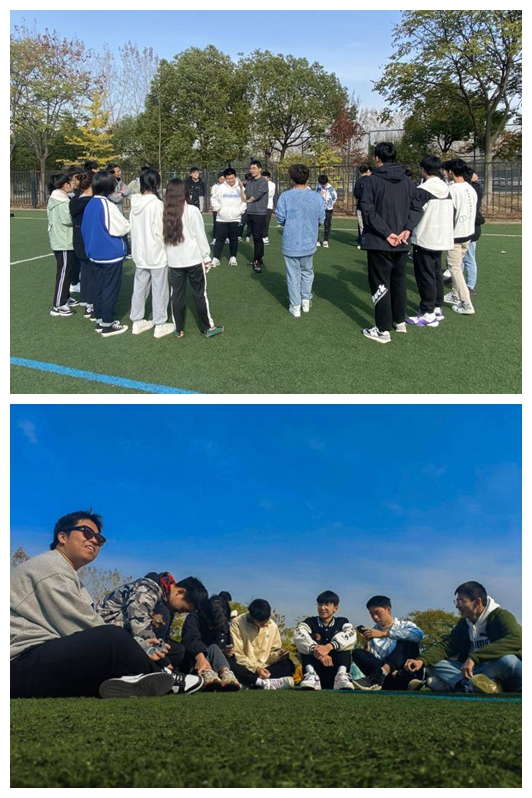 心理健康协会组织2021级新生以班级为单位,自选时间,在学校东区和北区运动场举办新生“大学生活第一课” 心理健康教育主题心理活动,宣传心理自助方法和求助渠道。全体新生和学院2021级各班班主任助理参加此次活动。