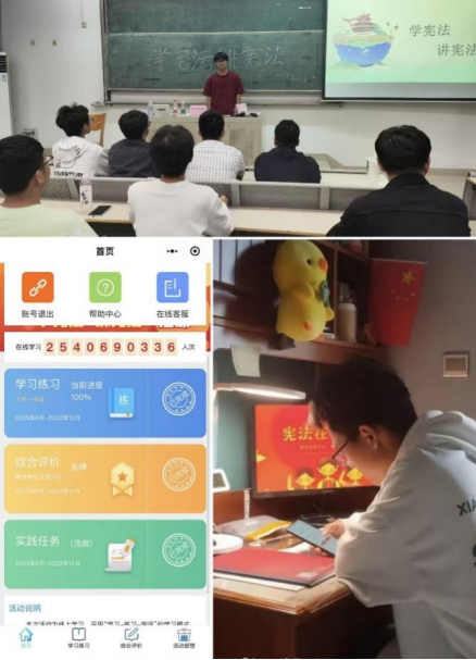 “中国特色社会主义最本质的特征是什么?答案是中国共产党的领导。”能动类2308班张智为正在参与宪法知识竞答。学院各班级围绕宪法相关内容开展主题班会,提高同学们对宪法的认识和理解。此外,学院还积极组织同学们在教育部全国青少年普法网、“青少年普法”微信小程序上参加“宪法卫士”行动计划,从答题中进一步感受宪法精神与法治观念。截至10月15日,学院“宪法卫士”行动计划参与率超过92%。