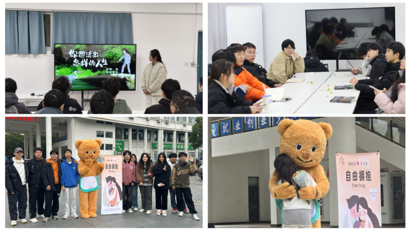 心理+能干,朋辈互助暖心。学院依托“能干”志愿者服务中心,整合校内外线上、线下各类资源,举办“心理朋辈队伍心理健康服务技能提升系列培训”,招募选拔部分具备心理专业知识和技能的心理委员与志愿者,扎实开展实践活动,包括“剧焦心澜,阅己明途”人生剧本杀活动,帮助同学们在体验虚拟人生的过程中了解自己;“情暖相拥,悦己连心”玩偶拥抱活动,充分发挥朋辈互助队伍的作用,释放压力、缓解疲劳。