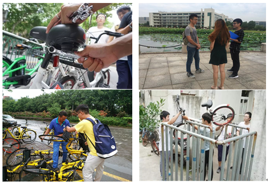 在为期十天的团队活动中,除了线上线下问卷调查、街头采访外,团队成员更是化身“单车猎人”,遍寻城市各个角落,遇到乱停乱放的单车就将其摆放整齐;遇到被恶意损坏的单车,进行现场报障;遇到因长期闲置而积满灰尘的单车,展开清洁打理……活动中,队员们先后查看了4000辆单车,报修并维修单车数200余辆,问题与建议总结达80多条。