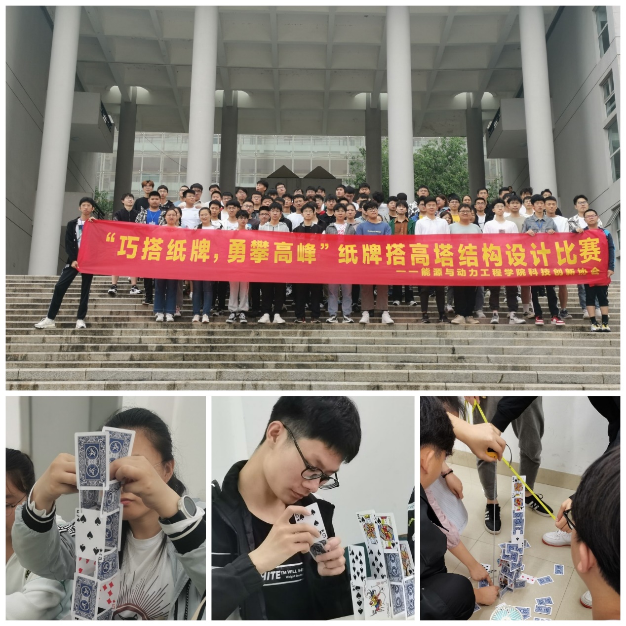 近期在学海苑·公共教学组团南馆A204举办了“纸牌搭高塔”结构设计大赛,近200名能动学子参与此次活动。
