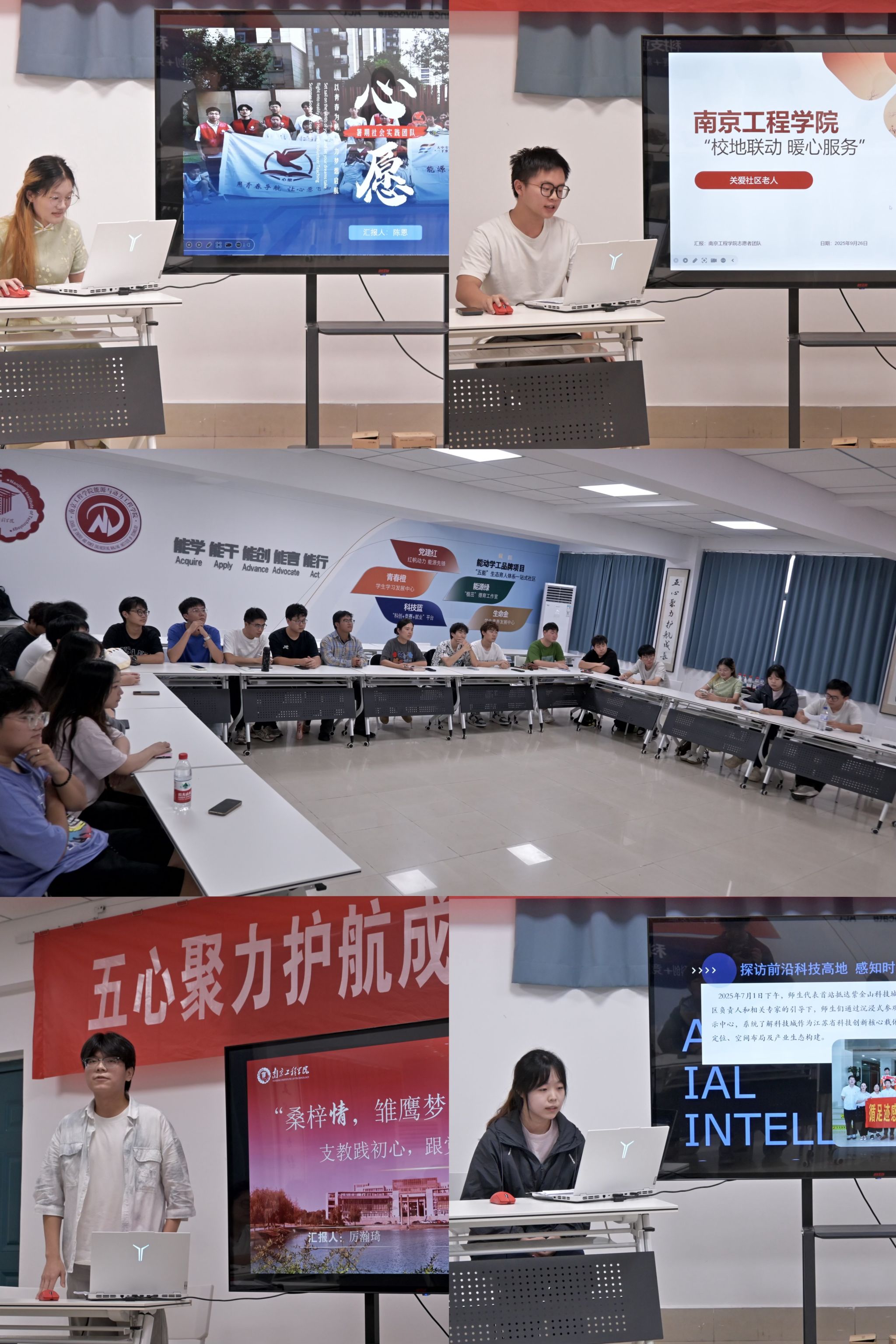 本次评比共有12支团队参加,评比环节分为团队展示和指导教师分享两个部分。各团队聚焦实践主题,通过PPT汇报、视频展播、学生答辩等形式,生动呈现了青年学子奔赴基层一线的青春足迹。“桑梓情·雏鹰梦”、“心愿”等支教团队前往乡村小学、社区等地开展丰富多样的课程形式,为孩子们提供了丰富多彩的学习体验,激发学习兴趣,树立远大理想;“红帆动力 能源先锋”科技实践团则前往紫金山科技城、南瑞继保等行业高地,直观感受科技创新赋能产业高质量发展,深刻认识“把科技命脉牢牢掌握在自己手中”的实践要义;“薪火相传・青春解码五老精神”实践团与江苏省军区南京第九干休所共建爱国主义教育阵地,激励同学们要珍惜和平生活、厚植家国情怀。