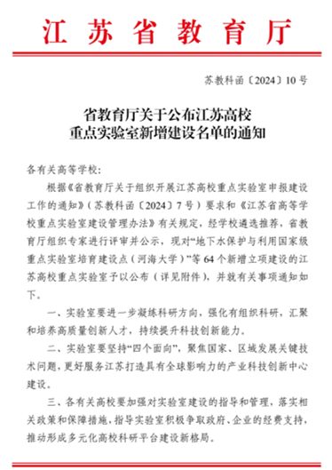 近日,江苏省教育厅发布《省教育厅关于公布江苏高校重点实验室新增建设名单的通知》(苏教科函〔2024〕10号),杏吧视频